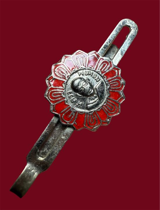 หลวงพ่อหอม วัดชากหมาก ปี08 จ.ระยอง.(แหนบ ลงยาสีแดง เนื้ออัลปาก้า สวยเดิมดี |