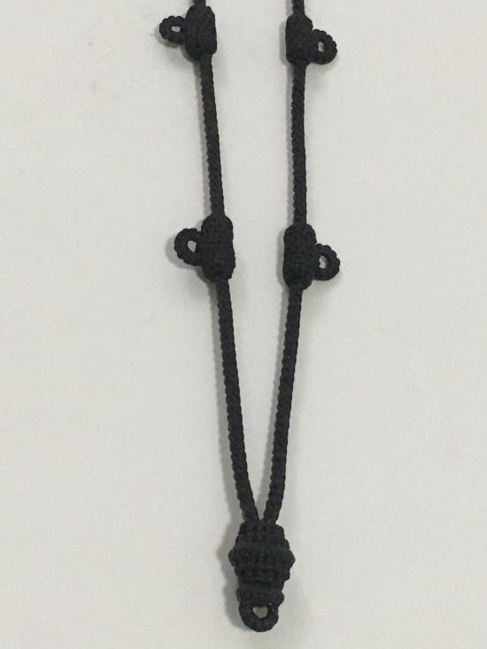 สร้อยคอเชือกเทียนถัก+หัวแขวนพระเป็นงานเย็บกับงานถักครับ แขวนพระได้ 5องค์ สีดำทั้งเส้นครับ |