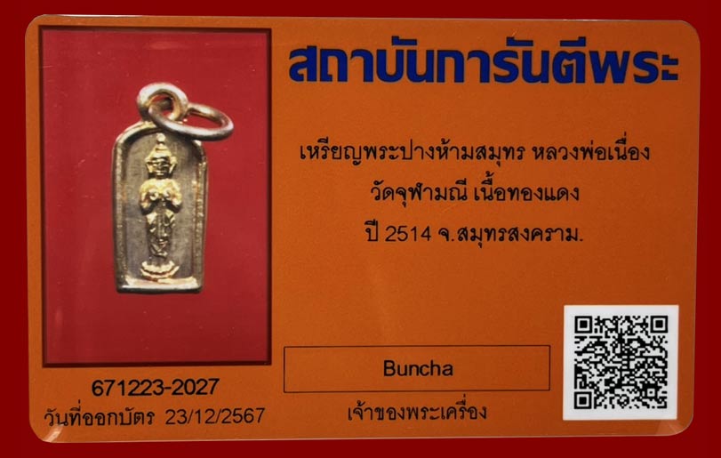!!!...เคาะแรก...เหรียญพระประจำวัน พิมพ์พระปางห้ามสมุทร(วันจันทร์) ปี2514 หลวงพ่อเนื่อง วัดจุฬามณีฯจ.สมุทรสงคราม เนื้อทองแดงผิวไฟ หายาก สภาพสวย พร้อมบัตรรับรองครับ...!!! |
