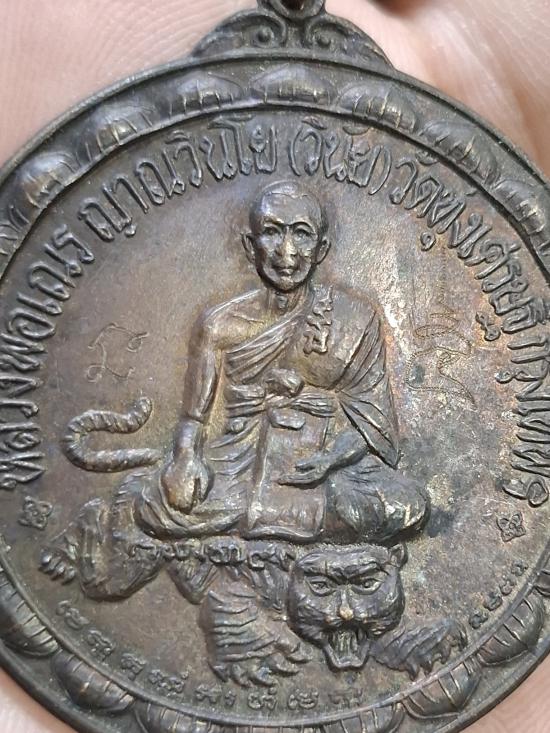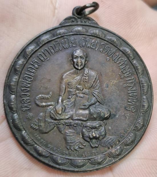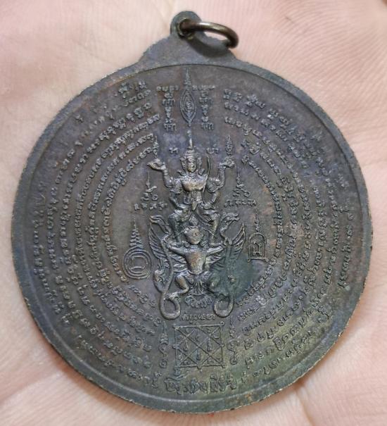 เหรียญจัมโบ นั่งเสือ หลวงพ่อเณรวัดทุ่งเศรษฐี หลังนารายณ์ทรงครุฑ เนื้อทองแดงมีจาร |