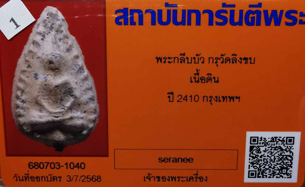 พระกลีบบัว กรุวัดลิงขบ เนื้อดิน ปี2410 จ.กรุงเทพฯ + บัตรG-pra สภาพเดิมค่ะ สภาพตามรูปทุกประการค่ะ