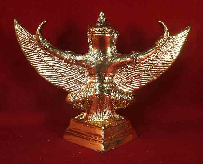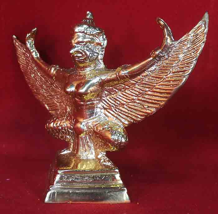 รายละเอียด พญาครุฑ ทองเหลือง ขนาดบูชาหน้าตัก 2.5 นิ้ว สูง 4.5 นิ้วหลวงพ่อทองสุข วัดหนองหม้อ ปลุกเสก