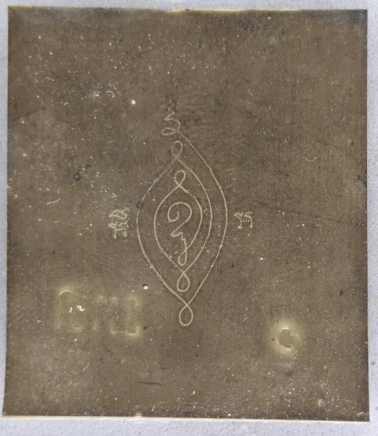 รูปถ่ายหลังแผ่นทองแดง พระอธิการใจ วัดพระยาญาติ จ.สมุทรสงคราม |