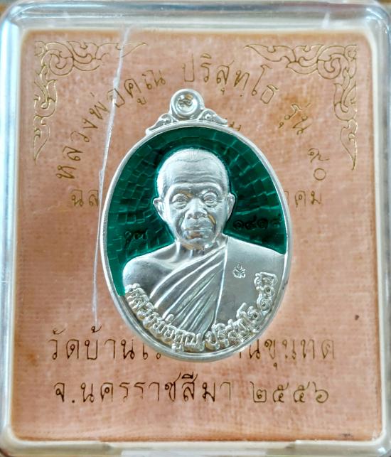 *** เหรียญ ฉลองวิหาร หลวงพ่อคูณ ปริสุทโธ เงินลงยาเขียว พร้อมกล่อง |