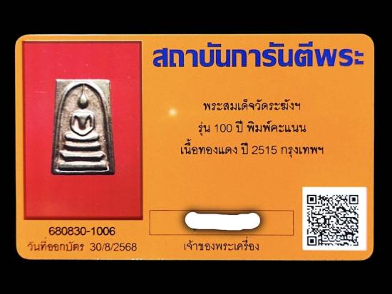 สมเด็จวัดระฆังๆ รุ่น100ปี พิมพ์คะแนน เนื้อทองแดง ปี2515 กรุงเทพๆ สภาพสวยๆ พร้อมบัตรG-PRA