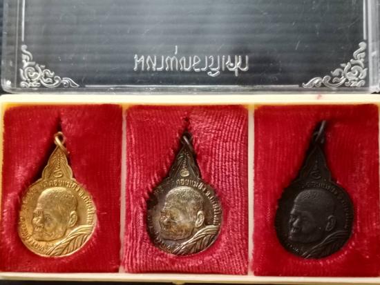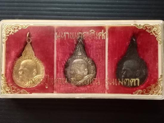 เหรียญหลวงปู่แหวน" รุ่นเมตตา" ปี 2520+กล่องชุด3เหรียญ กระไหล่ทอง-เงิน-ทองแดง +กล่องเดิม สภาพสวยน่าใช้น่าสะสม |