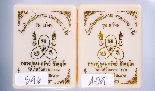 งานหล่อ ประกบ3 ชิ้น ข้างในมีผงงาช้างบด มวลสาร เขย่าดูมีมวลสาร สวยๆ หลวงปู่มหาศิลาร่วมเศก แบ่งเบาๆ ออฟชั่นเนื้อจะมีหลายๆ เนื้อหรือลงยาร่วมด้วย