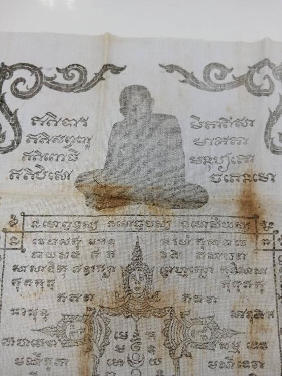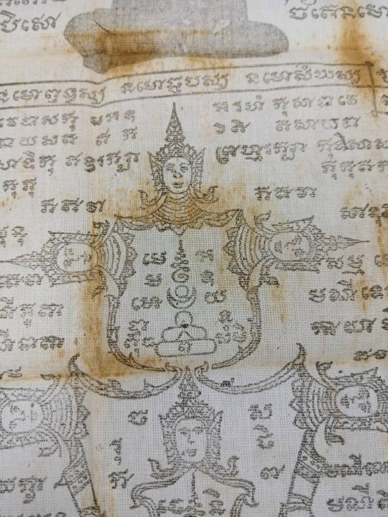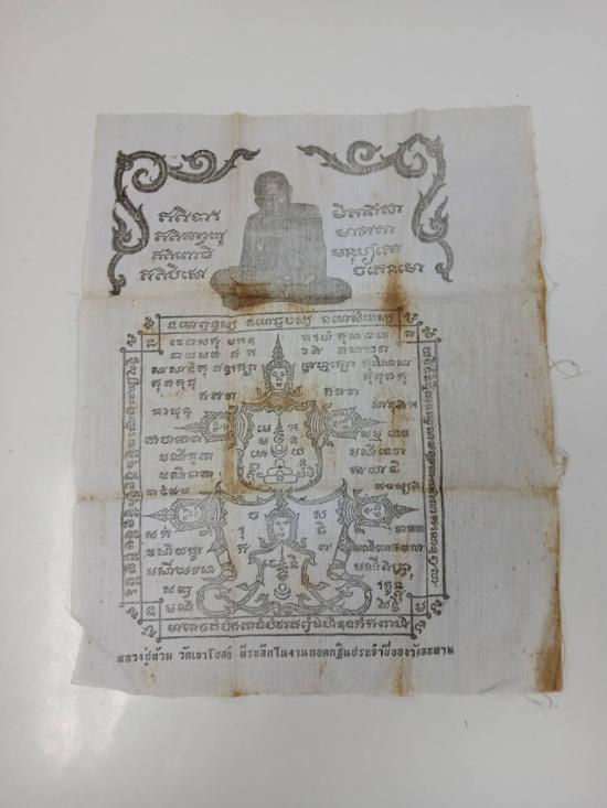 ผ้ายันต์หลวงปู่ท้วม ออกที่ระลึกงานทอดกฐินประจำปีของวัดละหาน(ไม่ทราบปีสร้าง)เก่าเก็บพับเดิมๆ