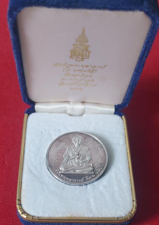 เหรียญสมเด็จพระพุทธจารย์โตพรหมรังษีด้านหลังพระพรหมวัดบวรปี36เนื้อเงินขัดเงาพ่นทรายสภาพเดิมพร้อมกล่องครับ |