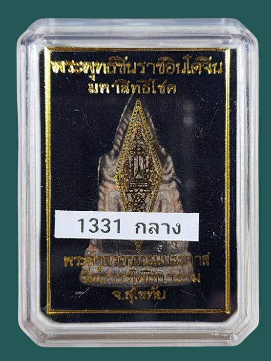 รูปหล่อโบราณพระพุทธชินราชอินโดจีน รุ่นมหาสิทธิโชค เนื้อชนวน พิมพ์กลาง หมายเลข 1331 สภาพสวยเดิมๆพร้อมกล่องครับ