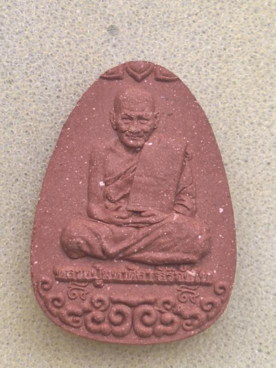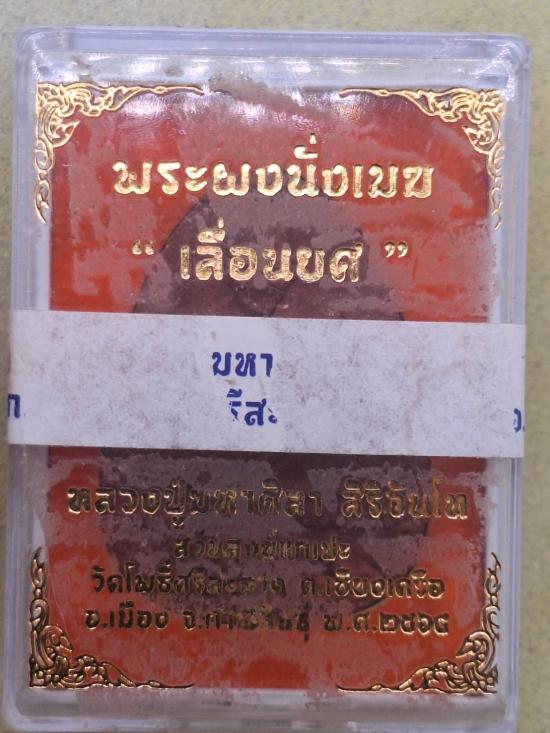 พระผงนั่งเมฆหลวงปู่มหาศิลาเนื้อแดงหลังฝังเม็ดยามาพร้อมกล่องเดิมครับ