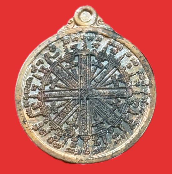 เคาะเดียวแดง เหรียญยันต์อิติปิโส8ทิศ หลังยันต์เงาะถอดรูป |