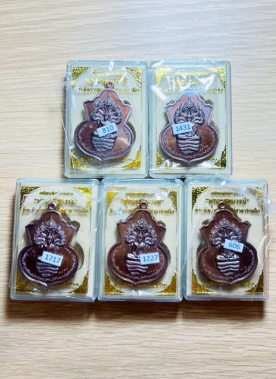 วัดใจ เหรียญนาคปรก รุ่นพุทธบุญบารมี หลวงปู่บุญ ธมมธีโร วัดบ้านหมากมี่ จ.อุบลราชธานี เนื้อทองแดงมันปู 5 เหรียญ |