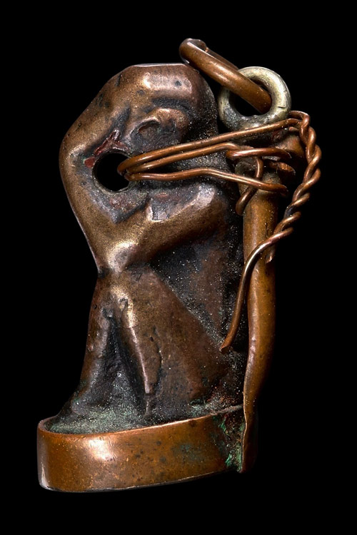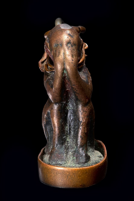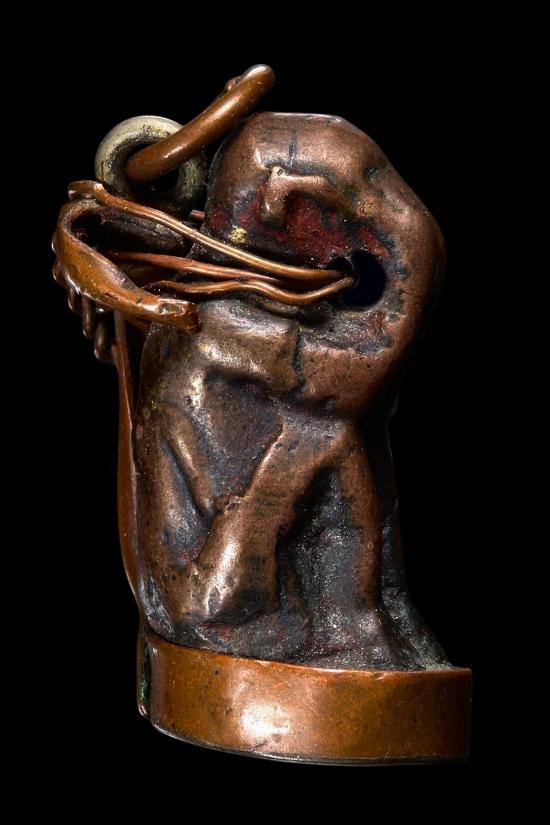หล่อโบราณ ลิงปิดตา หลังยันต์ เนื้อทองแดง มียาขัดแดง กระเช้าเลี่ยมเก่า ..... ไม่รู้ที่