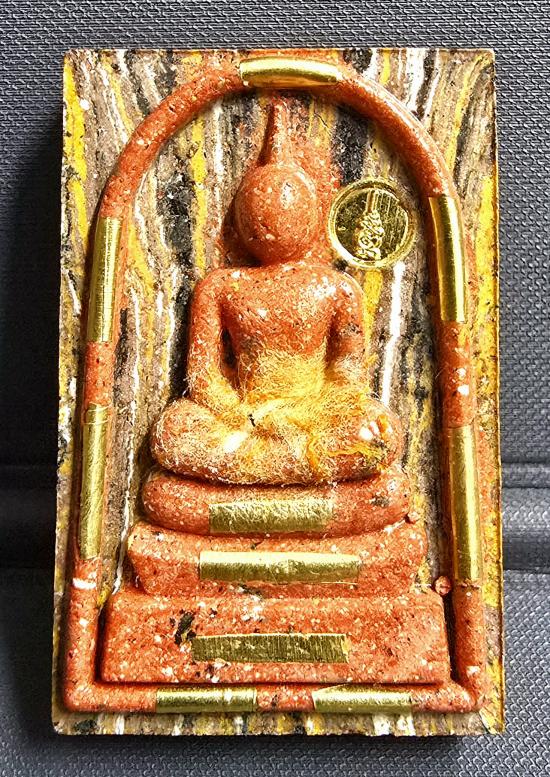 เนื้อลายเสือลายไม้ ตระกรุดทองทิพย์ 10 ดอก ฝังหมุด หลังพระคาถา พระสวยมากครับ