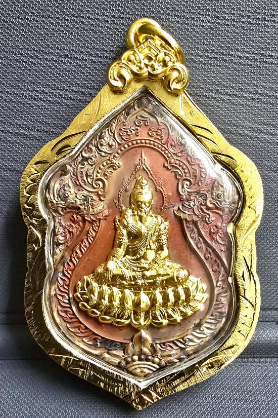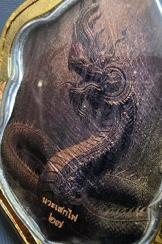 เนื้อนวะโลหะเสกไฟ หน้ากากชุบทองคำ หลังเลเซอร์พญานาค เลี่ยมกรอบชุบทองพร้อมใช้ สวยงามมากๆครับ