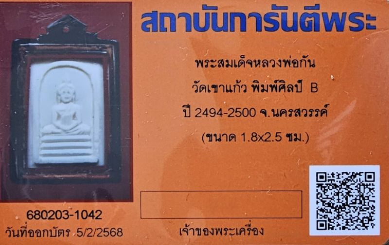 พระสมเด็จงาแกะ หลวงพ่อกัน วัดเขาแก้ว ปี2494 พร้อมบัตรรับรอง |