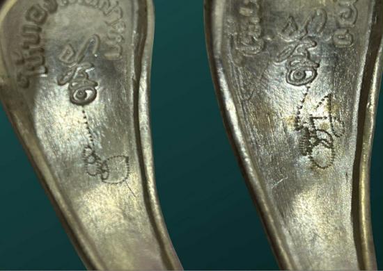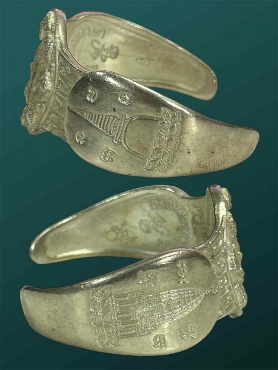 เตาะแรกแดง..กําไลองค์จตุคามรามเทพ วัดพุทไธศวรรย์ เนื้อเงิน มีรอยจาร |