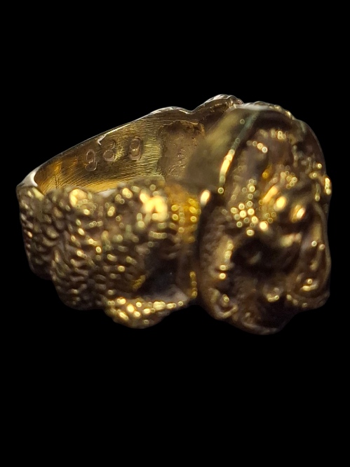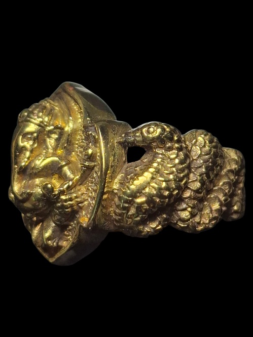 แหวนพระพิฆเนศ เนื้อทองเหลือง รุ่นมั่งมีศรีสุข หลวงปู่หงษ์ วัดเพชรบุรี ปี 2548 เบอร์ 6 |