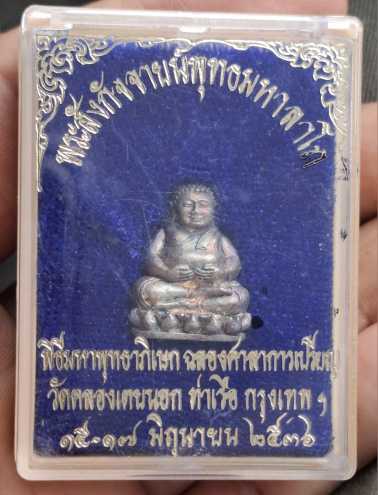พระสังกัจจายน์พุทธมหาลาโภ ปี36 เนื้อเงิน หลวงพ่อคูณ หลวงปู่หลิว หลวงพ่อแพ หลวงพ่อเปิ่น หลวงพ่ออุตตมะ หลวงพ่อหยอด หลวงพ่อดี และเกจีดังแห่งยุคร่วมปลุกเสก ออกวัดคลองเตยนอก กรุงเทพฯ |