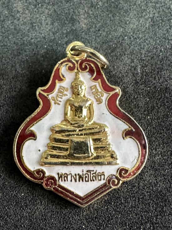 หลวงพ่อโสธร ถือเป็นพระศักดิ์สิทธิ์คู่บ้านคู่เมืองของชาวแปดริ้วและชาวไทยมายาวนาน เหรียญนี้แม้ไม่ทราบที่สร้าง แต่พิมพ์ทรงเสมา ลงยาสีแดง-ขาว สวยเดิม รายละเอียดชัดเจน เนื้อทองเหลืองชุบทองน่าเก็บบูชา