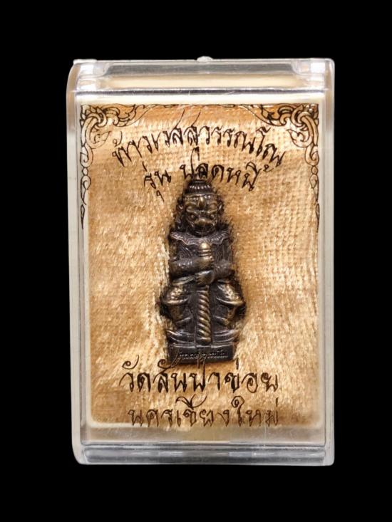 รูปหล่อท้าวเวสสุวรรณ รุ่น ''ปลดหนี้'' วัดสันป่าข่อย จ.เชียงใหม่ เนื้อมหาชนวนพิเศษผสมทองคำ พร้อมกล่อง หมายเลข ๖๗ พุทธาภิเษกพิธีใหญ่ วัดจุฬามณี สร้าง 99 องค์