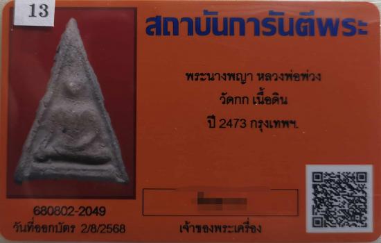 *เคาะเดียวแดงค่ะ*ลพ.พ่วง วัดกก พิมพ์นางพญา เนื้อดิน กรุเพดานโบสถ์ ปี2473 จ.กรุงเทพฯ พร้อมบัตรรับรอง