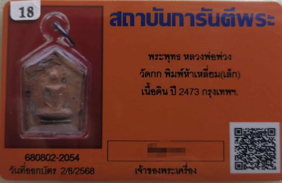 *เคาะเดียวแดงค่ะ*ลพ.พ่วง วัดกก พิมพ์ห้าเหลี่ยมเล็ก เนื้อดิน กรุเพดานโบสถ์ ปี2473 จ.กรุงเทพฯ