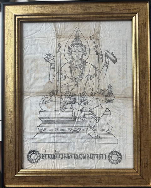 ผ้ายันต์ท่านท้าวมหาพรหมธาดา วัดดอนยานนาวา ของอาจารย์เณรวิรัช ลุปซ่าร์ สภาพเก่าเก็บเดิมๆ พร้อมกรอบบูชา มีบัตรรับรองการันตีเรียบร้อยครับ |