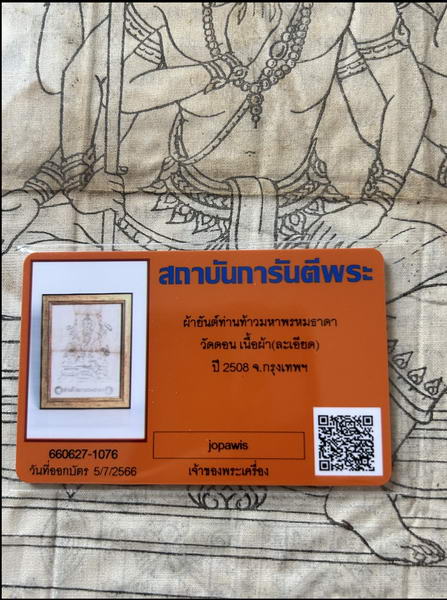 ฟูลออฟชั่นเลยครับ มีนามบัตรเก็บมากับผ้ายันต์ไว้อย่างดีเลยครับ