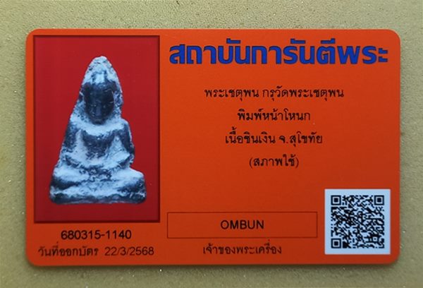 +++ (เคาะเดียวครับ) ...พระเชตุพนหน้า พิมพ์หน้าโหนก เนื้อชินเงิน กรุวัดพระเชตุพน จ.สุโขทัย + บัตร G-Pra +++ |