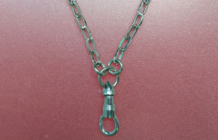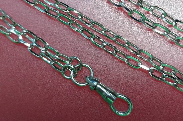 | รายละเอียด | สร้อยสแตนเลสลายโซ่เหลี่ยม ยาว 26 นื้ว พร้อมสปริงก้ามปูสแตนเลสหมุนได้ |