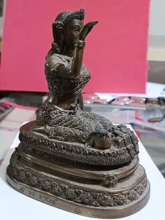 พระแม่นางกวัก หลวงปู่คีย์ กิติญาโณ วัดศรีลำยอง จ.สุรินทร์ ฝังตะกรุดเงิน 3 ดอก ฉีวร แบงค์ ขนาดบูชา 3.5 นิ้ว กว้าง 5.2 นิ้ว สูง 6 นิ้ว เนื้อโลหะรมมันปู บูชาแล้วโชคลาภ ค้าขายดี เงินทองไหลมาเทมา