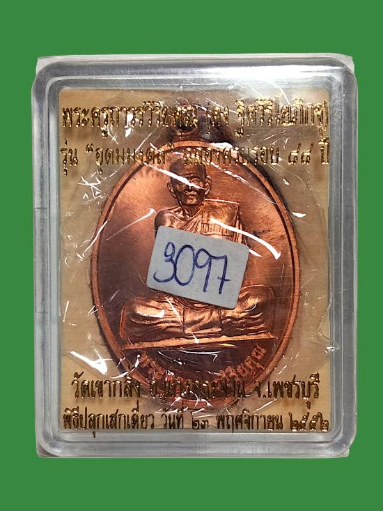 เหรียญอุดมมงคล หลวงพ่อคง วัดเขากลิ้ง จ.เพชรบุรี เนื้อแดงผิวไฟขัดเงา ทองแดงสร้างเพียง5000 เหรียญ |