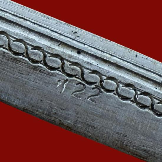 มีดหมออาคม รุ่นแรก เลขสวย เบอร์ 22 สร้างน้อย 199 ด้าม ปี 2555 หลวงปู่ชั้น วัดดอนสนวน จ.ชัยนาท พร้อมซองรูปใบฝอยเดิมจากวัด สภาพพระตามรูปที่ลงทุกประการ (ขนาดยาวรวมด้ามประมาณ 12.3 ซม.)