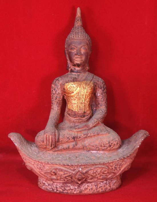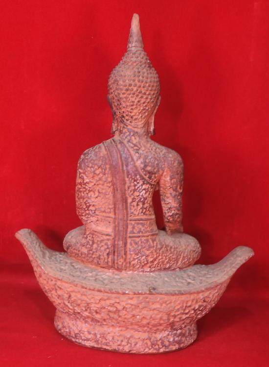 พระพุทธรูปสุโขทัยประทับเรือ หน้าตัก 5 นิ้ว สูง 10นิ้ว เนื้อศิลาแลงหล่อผสมมวลสารผงพุทธคุณ หลวงพ่อแหวน วัดเขาสูงปลุกเสก |