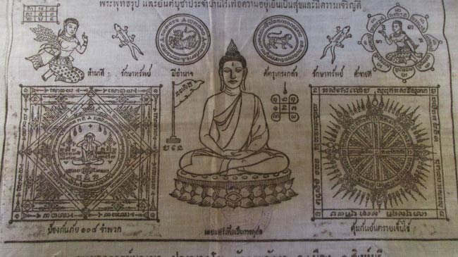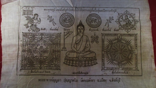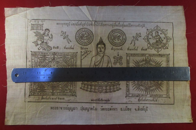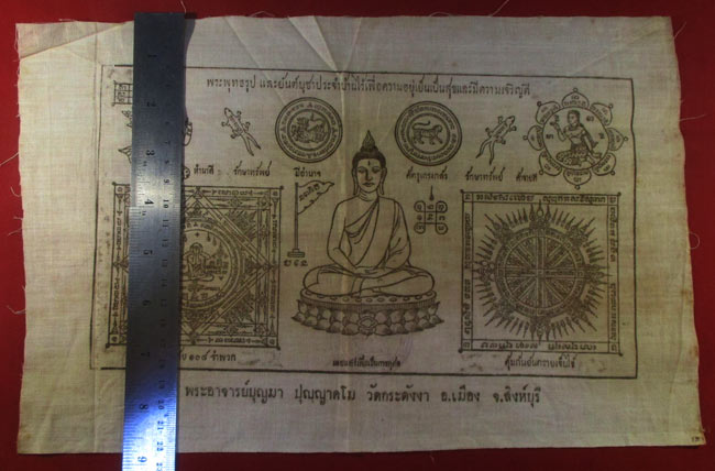 ผ้ายันต์ พระอาจารย์บุญมา ปุญฺญาคโม วัดกระดังงา อ.เมือง จ.สิงห์บุรี เนื้อผ้าดูเก่า ครับ (พระบ้าน ครับ) |