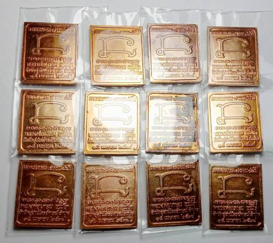 เคาะเดียวแดง เหรียญสี่เหลี่ยมลายไทย เนื้อทองแดง ปี 38 ตอก โค๊ดตัว นะ ด้านหลังกำกับทุกเหรียญ ( จำนวน 12 เหรียญ )