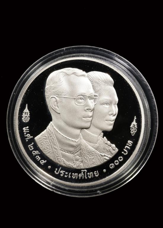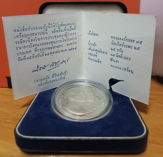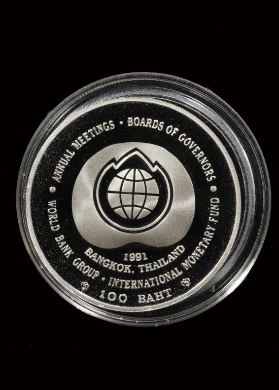 เหรียญกษาปณ์ชนิด 100 บาท ในหลวงร.9-พระราชินี ที่ระลึกเนื่องในการประชุมสภาผู้ว่าการธนาคารโลก WORLD BANK ปี2534 (((เนื้อนิกเกิล ขัดเงา))) ไม่ผ่านใช้ กล่อง+ใบ
