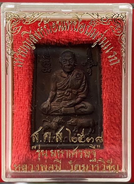 เคาะเดียว...เหรียญสี่เหลี่ยมทองแดงรดำ สิงห์ป้อนเหยื่อปั๊มรุ่นแรก หลวงพ่อมี วัดมารวิชัย จ.อยุธยา ส.ค.ส. ปี 38 รุ่น มหาเศรษฐี สวยมาก กล่องวัด (4) |