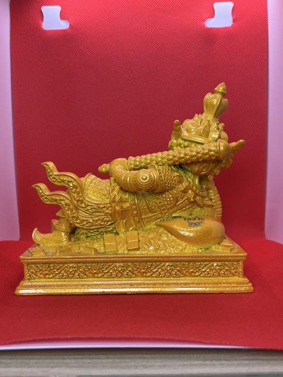 แร่เหล็กน้ำพี้ งานวัด ท้าวเวสสุวรรณ ปางนอนเสวยสุข พระอาจารย์เชษฐ์ วัดถวิลศิลามงคล กายเปลี่ยนสีตามอุณภูมิ พร้อมกล่องเดิมสูง 5.5 นิ้ว เนื้อแร่เหล็กน้ำพี้ แม่เหล็กดูดติดได้ |