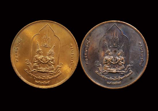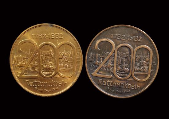 *เคาะเดียว 2 เหรียญ* เหรียญที่ระลึกการสมโภชกรุงรัตนโกสินทร์ 200ปี ปี2525 (((ขนาด 5 ซม. เนื้อทองแดง+ทองแดงรมดำ))) |