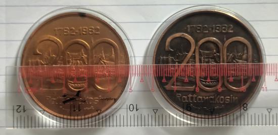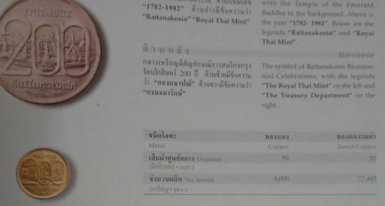 เหรียญที่ระลึกการสมโภชกรุงรัตนโกสินทร์ 200ปี ปี2525 (((ขนาด 5 ซม.))) เนื้อทองแดง พบน้อย สร้างน้อย 4000 เหรียญ + เนื้อทองแดงรมดำ สร้าง 27485 เหรียญ