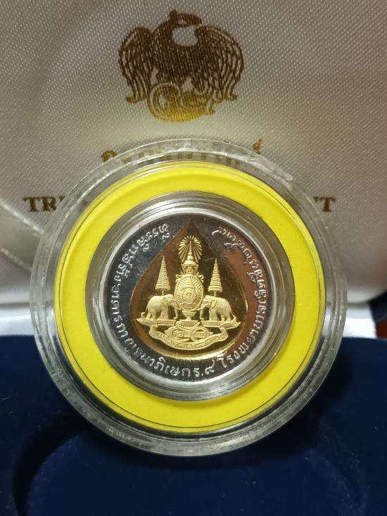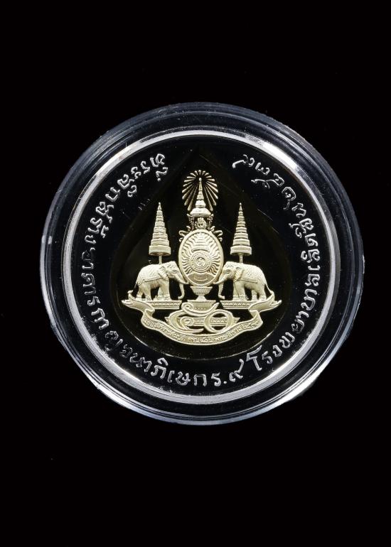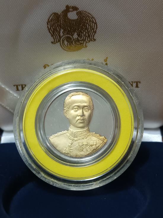 เหรียญที่ระลึกสร้างอาคารกาญจนาภิเษก ร.9 โรงพยาบาลเลิดสิน ปี2539 (((เนื้อเงิน พระบรมรูปทองคำทาบ เหรียญคามิโอ ชนิด Goldplated))) ขนาด 2.6 ซม. จอง 3000 บาท *ไม่มีกล่องเดิม*