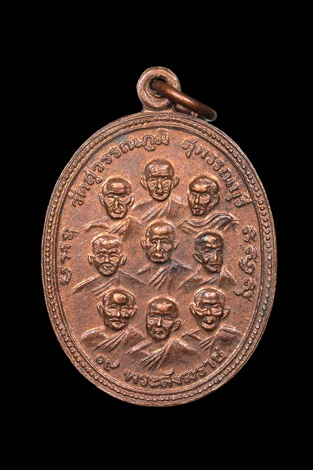 เหรียญ " 9 พระสังฆราช หลัง 9 มหาราช " เทิดพระเกียรติ 9 รัชกาล วัดสุวรรณภูมิ จ.สุพรรณบุรี ( หลวงพ่อมุ่ยปลุกเสก )