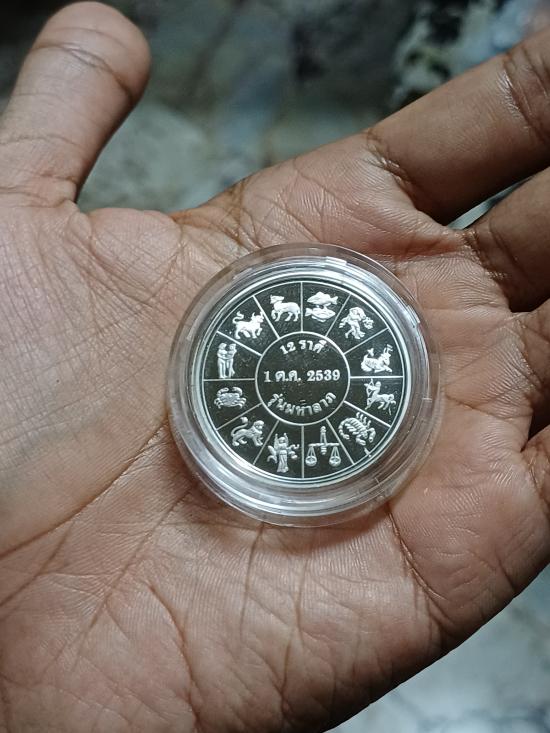 เหรียญ ร.5 หลัง 12 ราศี รุ่นมหาลาภ เนื้อเงินขัดเงา พร้อมกล่องเดิม |