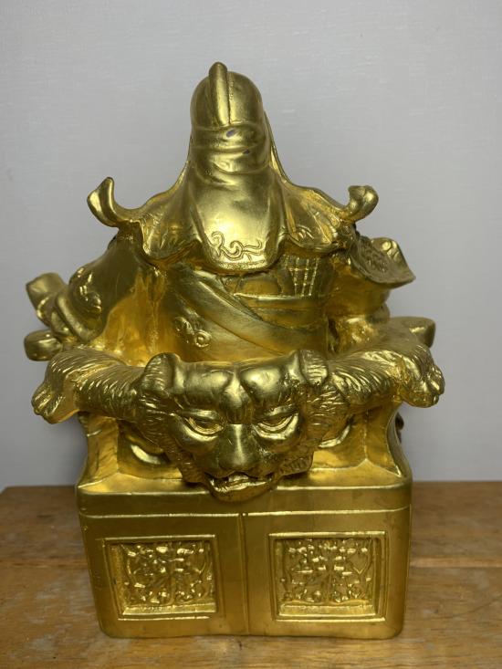 เทพเจ้ากวนอู เนื้อโลหะ ปิดทองแท้ สูง 8 นิ้ว กว้าง 7 นิ้ว ฐานหน้า4.5 นิ้ว สวยมาก เคาะเดียว