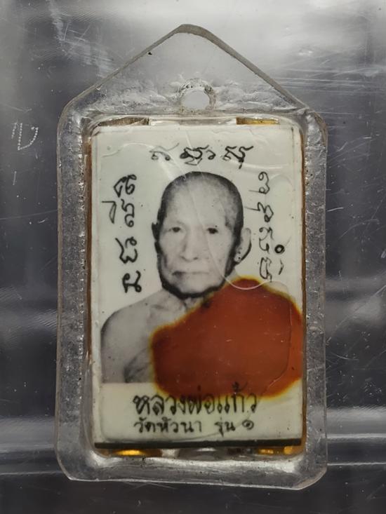 รูปถ่าย หลังตะกรุด หลวงพ่อแก้ว วัดหัวนา จังหวัดเพชรบุรี เลี่ยมเก่าพลาสติกกันน้ำ |