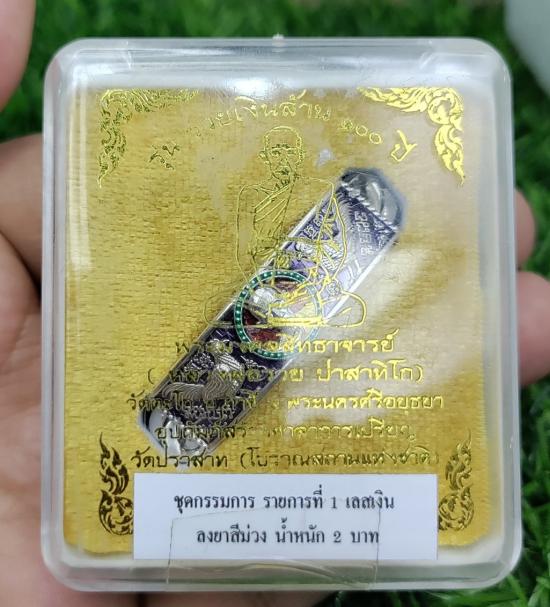 หลวงพ่อรวย วัดตะโก เลส รุ่นรวยเงินล้าน ปี64 เนื้อเงินลงยาม่วง เลข 1 สร้าง199 เส้น ขนาด2 บาท ป้ายแดงไม่ผ่านการใช้ |