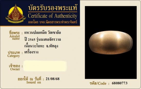 <<<วัดใจ20บาท..แหวนปลอกมีด วัดเขาอ้อ จ.พัทลุง เนื้อนวะโลหะแก่ทอง รุ่นมงคลจักรวาล สร้างปี 2545 (บัตรรับรองนิตยสารพระท่าพระจันทร์) สวยเดิมทุกประการ น่าบูชามากๆครับ>>>